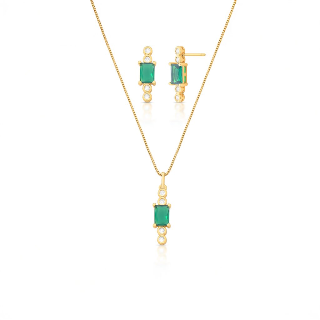 BANHO OURO PEDRAS VERDES E ZIRCÔNIAS